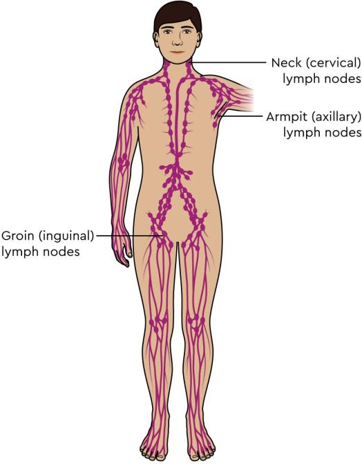 Limfni čvorovi stvaraju imunološke stanice koje pomažu tijelu u borbi protiv infekcija. Limfni čvorovi također filtriraju limfnu tekućinu kako bi uklonili bakterije i stanice raka iz tijela. Ako se u limfnoj tekućini nađu bakterije ili stanice raka, limfni čvorovi će stvoriti više bijelih krvnih stanica ( krvne stanice zadužene za borbu protiv bakterija i infekcija ). Ova mreža je dio imunološkog sustava tijela i pomaže u filtriranju i oslobađanju tijela od toksina i otpada. Stoga je glavna funkcija limfnog sustava obrana od infekcija, raznih oštećenja uključujući i obranu od tumora. Limfni čvorovi nalaze se u različitim dijelovima tijela, poput vrata, pazuha, trbuha i prepona ( slika 4. )