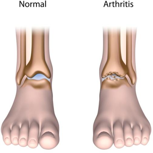 &osteoartitis – je artritis koji se događa uslijed degenerativnih promjena tijekom svakodnevnog pokreta i aktivnosti. Posljedice takvog artritisa su vidljive tek nakon mnogo godina, stoga ovaj oblik doktori često nazivaju starosni artritis. U zglobovima stopala najčešća lokacija je skočni zglob ; zglob između nožnog palca i I. metatarsalne kosti