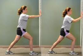 &istezanje Ahilove tetive ( slika 18. ) – osloniti se na zid ; iskoračiti zdravom nogom prema zidu ; bolnu nogu ispružiti prema unatrag ; istezati stražnju nogu tako da peta ostane u kontaktu sa podlogom ; zadržati 10 sek., ponoviti 3x na svakoj strani