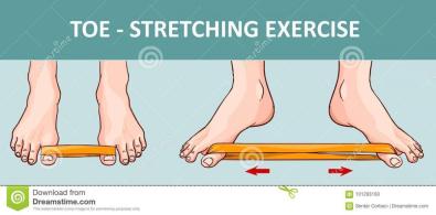 &istezanje nožnih prstiju. Omotati sve nožne prste elastičnom trakom te širiti prste protiv otpora trake ; zadržati 5 sekundi ; ponoviti 10 x