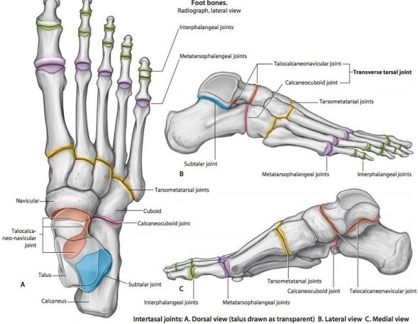 &tarsometatarsalni zglobovi ( Lisfrancov zglob ) ; intermetatarsalni zglobovi ; metatarsophalangealni zglobovi ; interphalangealni zglobovi ( slika 12. )